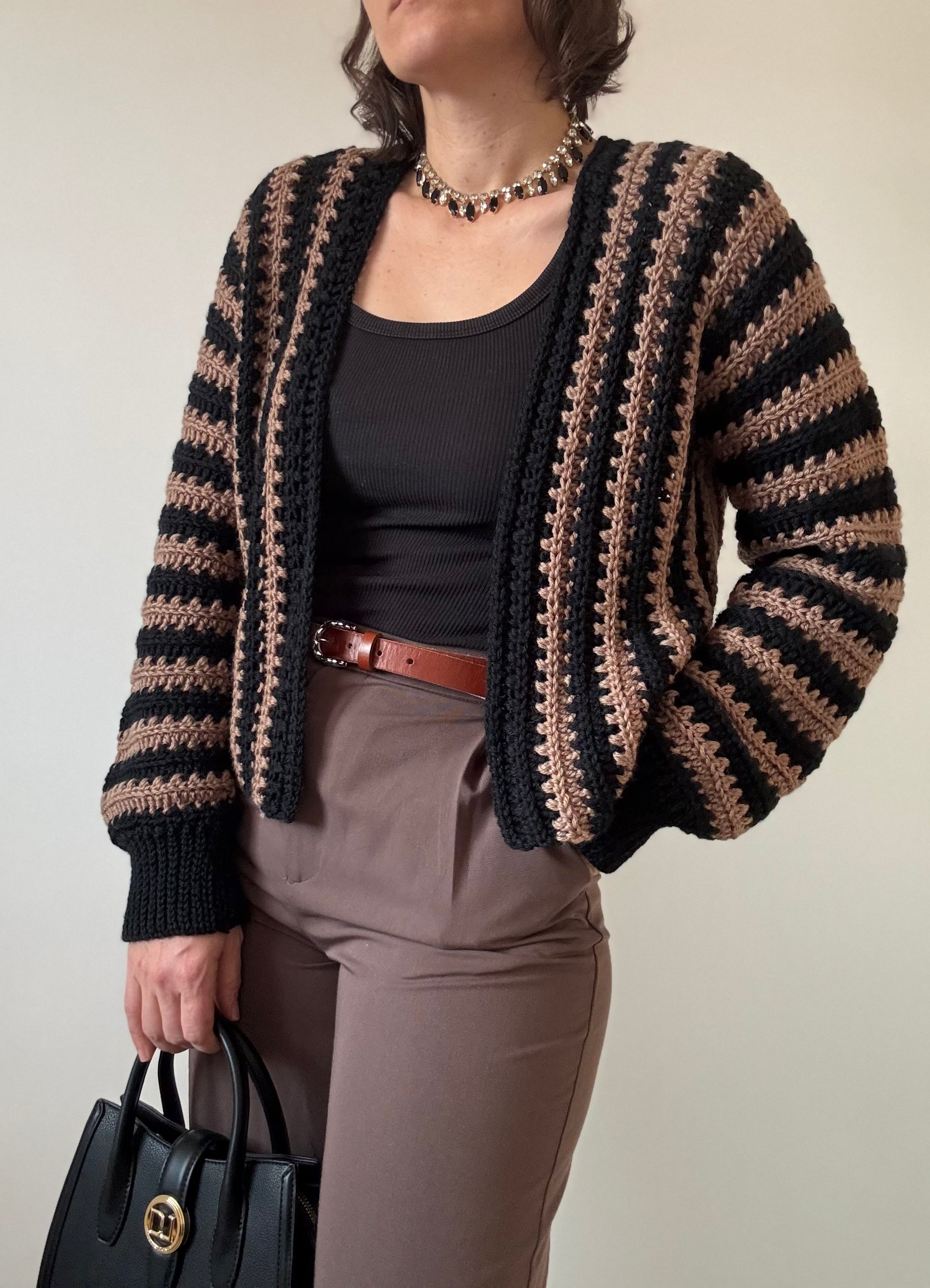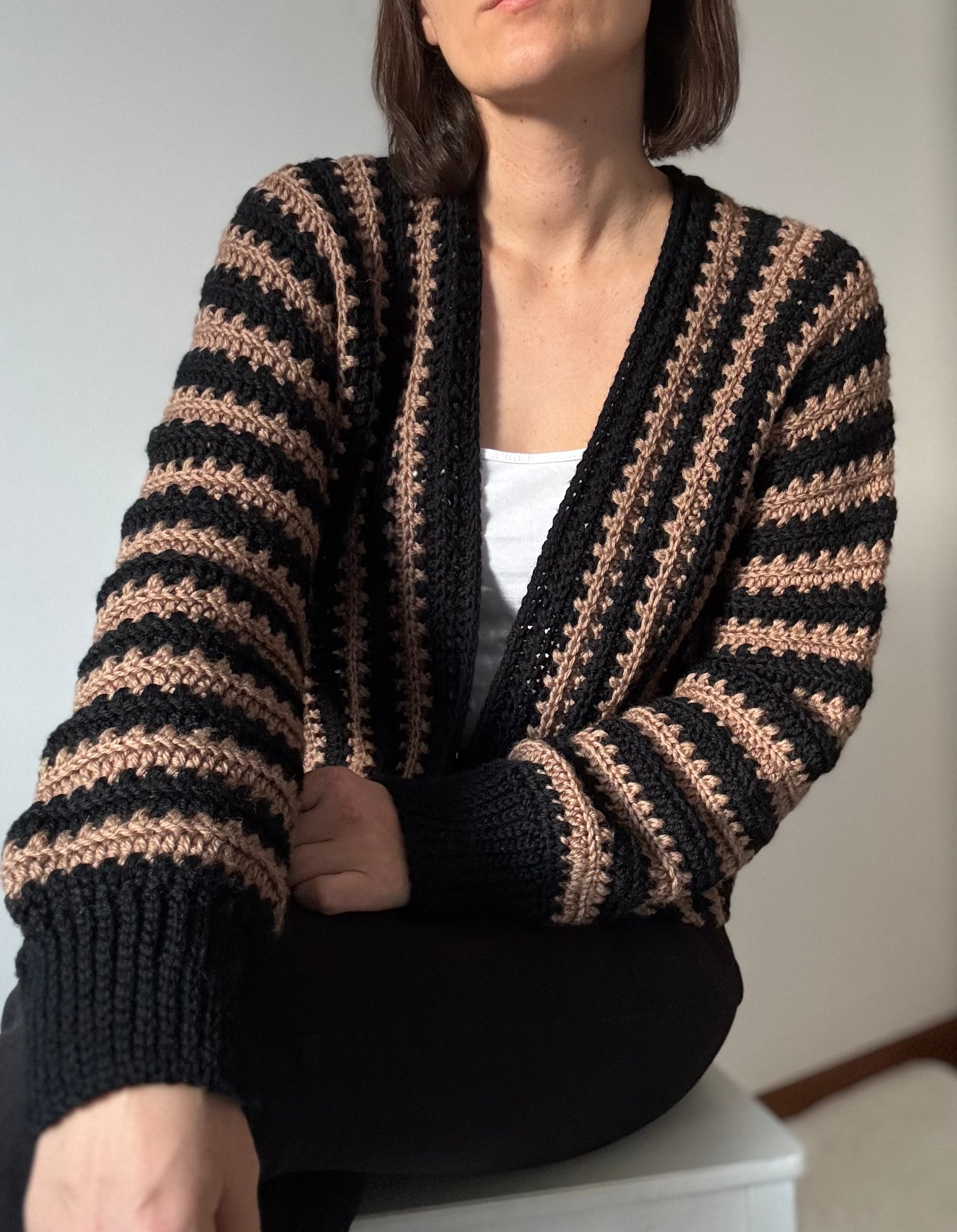 In the pattern you’ll find instructions for three different lengths, and regardless of your size, you can make the cardigan in the length you prefer.